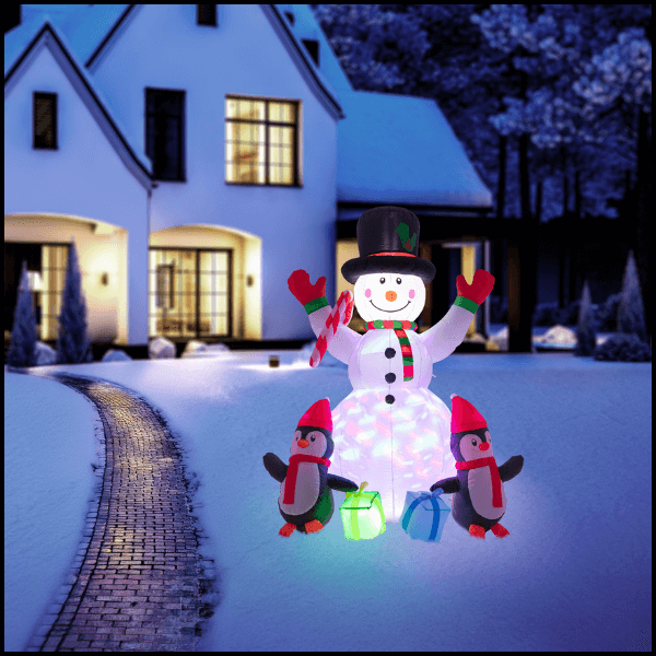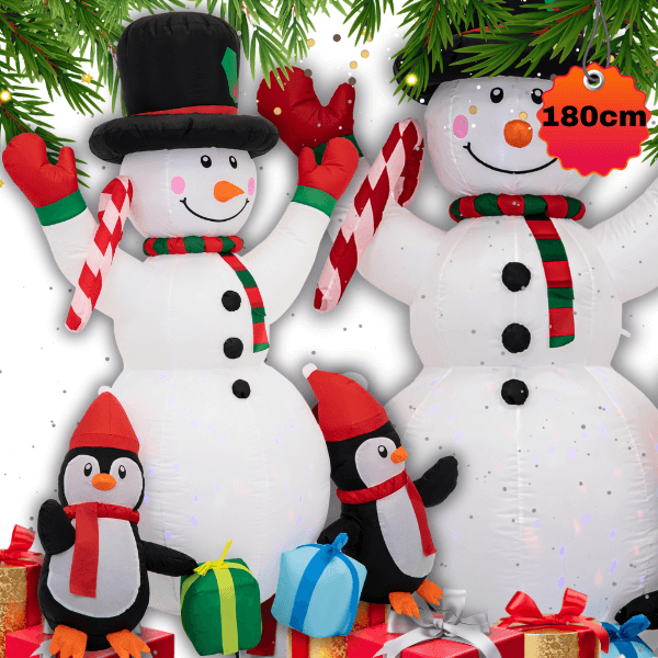 Stwórz magiczną, zimową atmosferę z nadmuchiwaną dekoracją świąteczną w kształcie bałwana! Dzięki wbudowanej pompce dekoracja sama się nadmuchuje, a diody LED podświetlają ją od wewnątrz, tworząc zachwycający efekt świetlny zarówno w dzień, jak i po zmroku. Wykonana z odpornego na warunki pogodowe materiału, idealnie sprawdzi się w ogrodzie, na tarasie lub przy wejściu do domu.