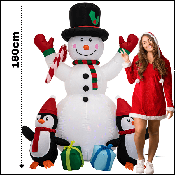 Bałwan z pingwinami 180 cm nadmuchiwany świecący LED dmuchaniec wodoodporny