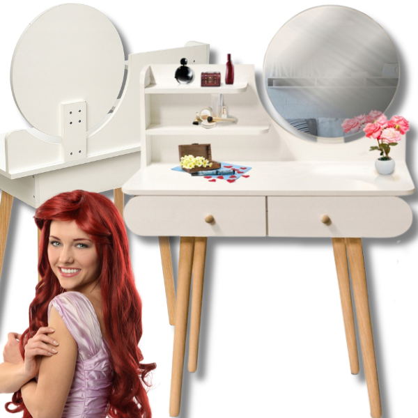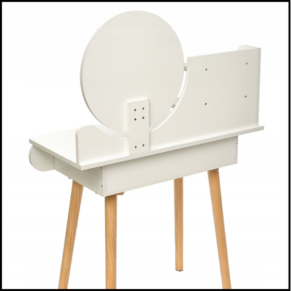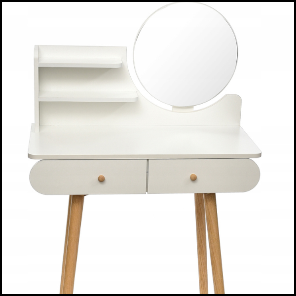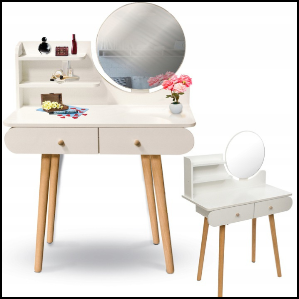 Biała toaletka dla dziewczynki z lustrem to idealny mebel, który łączy w sobie funkcjonalność, estetykę i nowoczesny design w stylu skandynawskim. Wykonana z płyty MDF o matowym wykończeniu, prezentuje się elegancko i ponadczasowo, świetnie pasując do pokoju dziecięcego.