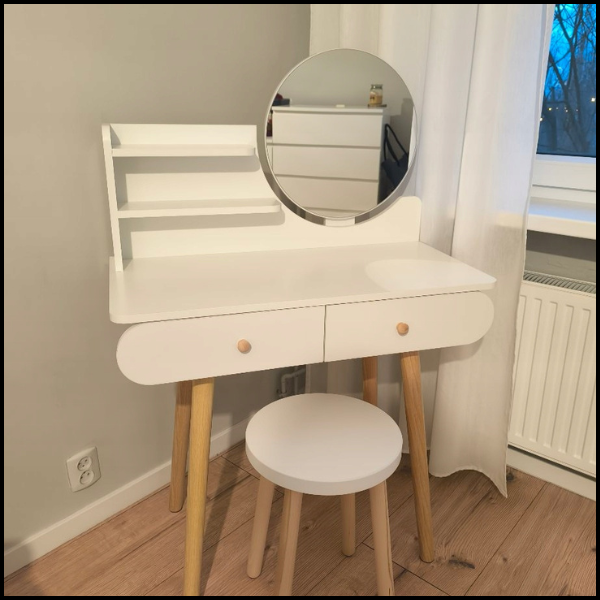 Postaw na toaletkę z okrągłym lustrem 40 cm, które doda Twojemu wnętrzu stylu, elegancji i funkcjonalności, zapewniając idealne warunki do codziennej pielęgnacji.