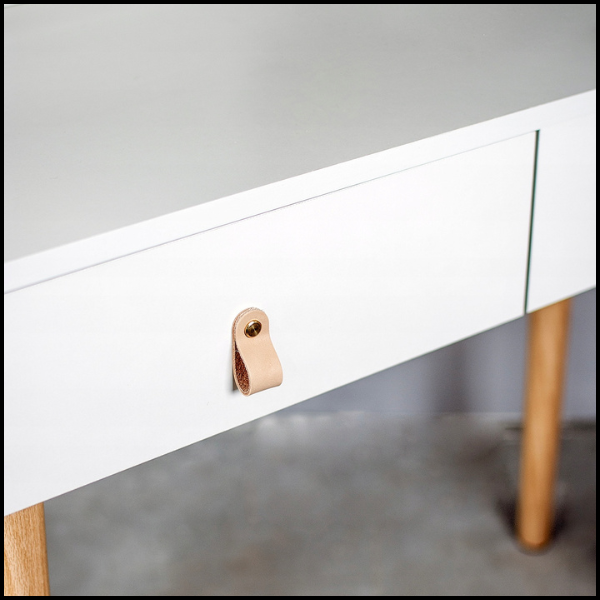 - Uchwyty szuflad ze skórzanym paskiem.