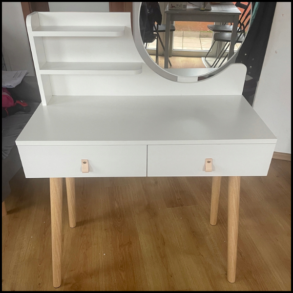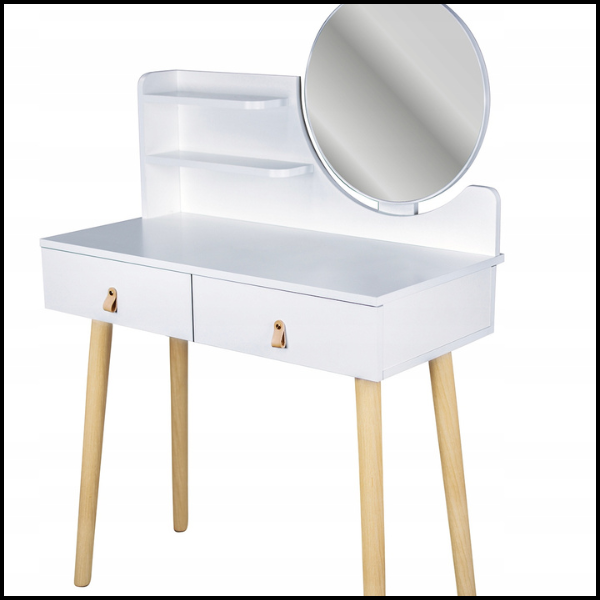 Biała toaletka 80x40cm skórzany uchwyt skandynawska lustro kosmetyczka