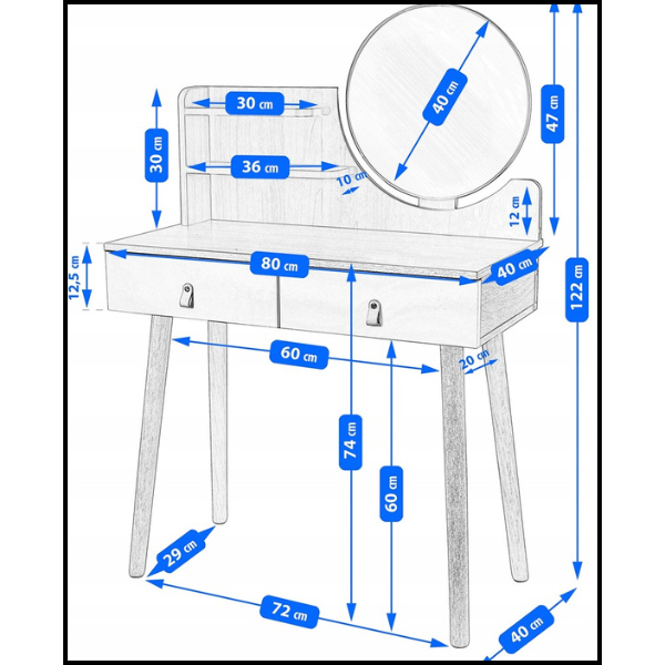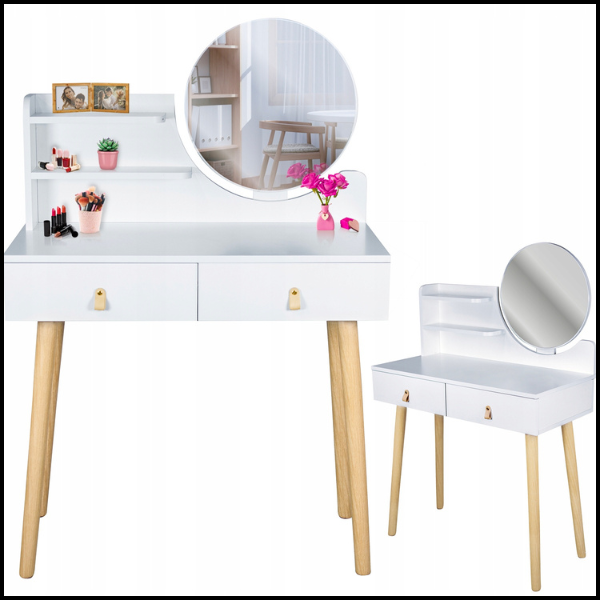 Postaw na toaletkę z okrągłym lustrem 40 cm, które doda Twojemu wnętrzu stylu, elegancji i funkcjonalności, zapewniając idealne warunki do codziennej pielęgnacji.