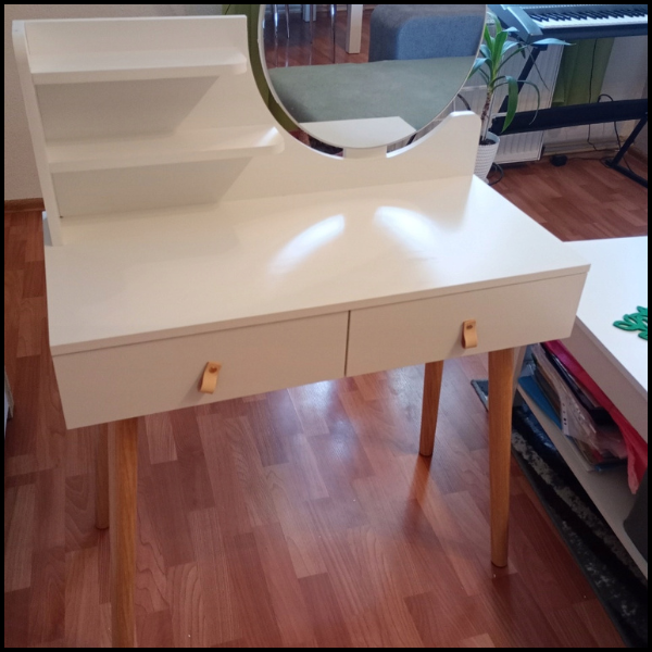 BIAŁA TOALETKA 40x80cm SKÓRZANY UCHWYT SKANDYNAWSKA LUSTRO KOSMETYCZKA