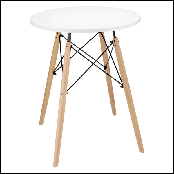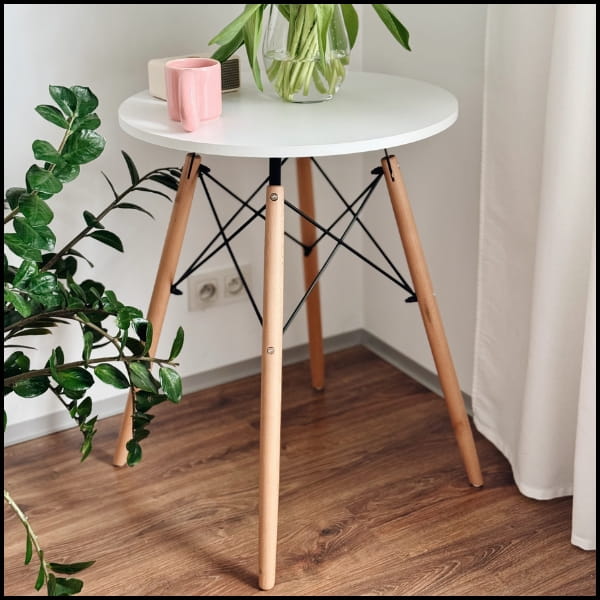 Biały-drewniany nowoczesny skandynawski okrągły stół do salonukuchni 60x74cm