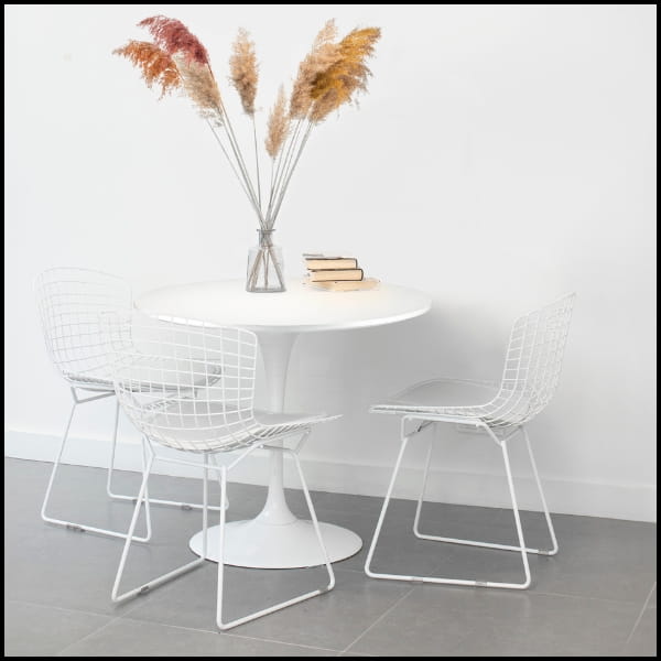 Dzięki kompaktowej formie stół doskonale sprawdzi się w mniejszych przestrzeniach, umożliwiając swobodne ustawienie krzeseł i wygodne korzystanie z blatu. Nowoczesny, minimalistyczny design nadaje wnętrzu elegancji, lekkości i ponadczasowego charakteru, idealnie wpisując się w aktualne trendy aranżacyjne.