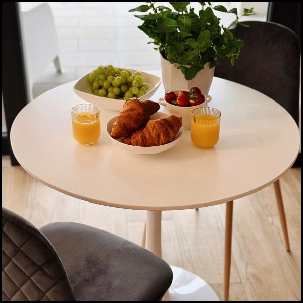 Okrągły blat z płyty MDF w kolorze białym – trwały, estetyczny i łatwy w pielęgnacji