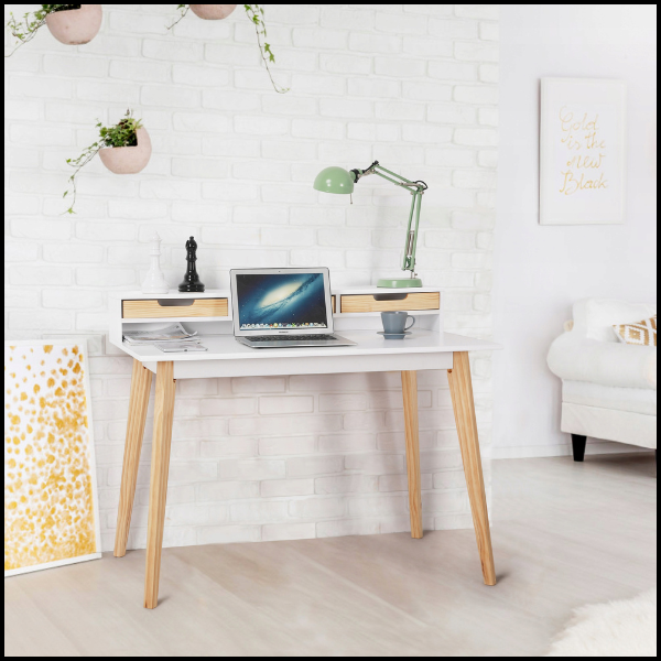 BIURKO Z DREWNIANYMI NOGAMI I NADSTAWKĄ – ELEGANCJA I FUNKCJONALNOŚĆ W TWOIM GABINECIE