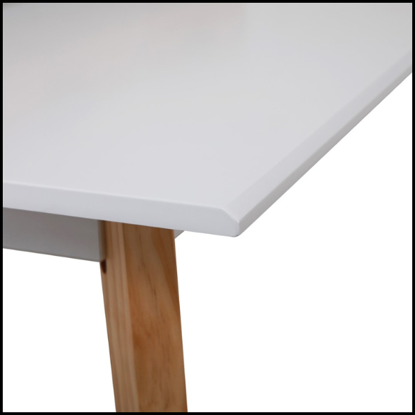 Blat biurka wykonano z wysokiej jakości płyty MDF w kolorze białym, co zapewnia trwałość, estetykę i łatwość w utrzymaniu czystości. Gładka powierzchnia blatu nie tylko wygląda nowocześnie, ale również jest odporna na codzienne użytkowanie i drobne uszkodzenia.