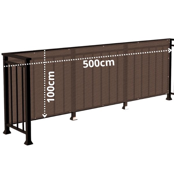 BRĄZOWA OSŁONA Z MOCNEGO MATERIAŁU NA TARAS, BALKON 97% ZACIEMNIENIA WYMIARY 100 CM x 500 CM
