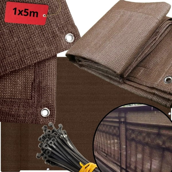 Brązowa osłona balkonowa 1x5m, zasłona na taras , 97% zaciemniania, mata cieniująca