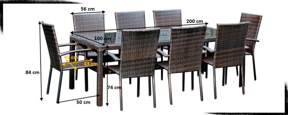 BRĄZOWE MEBLE OGRODOWE, DUŻY ZESTAW STOŁOWY, STÓŁ + KRZESŁA SOTTILE BROWN  1x DUŻY STÓŁ | 8x KRZESŁO
