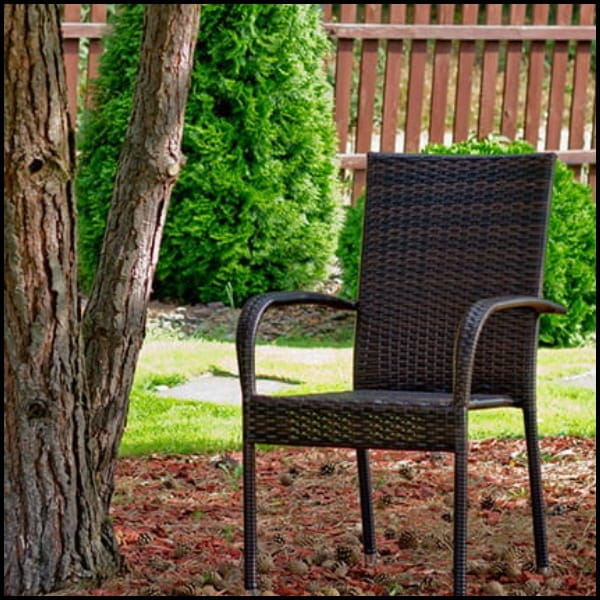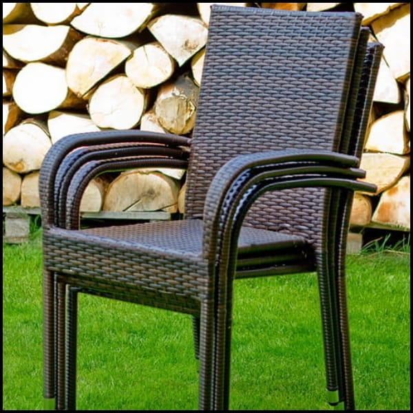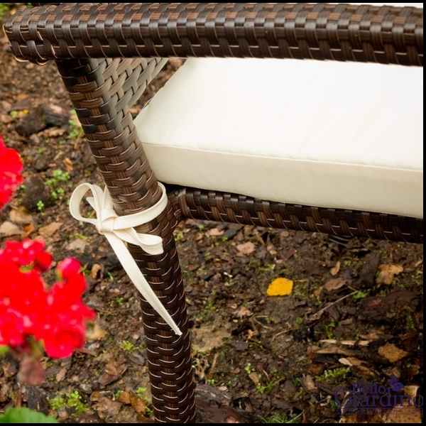Stelaż wykonany z wytrzymałej stali pokrytej warstwą ochronną gwarantuje stabilność i odporność na korozję. Całość obita została plecionką z technorattanu w odcieniach brązu, która nie tylko pięknie się prezentuje, ale również jest odporna na zmienne warunki atmosferyczne – deszcz, promieniowanie UV czy wilgoć.