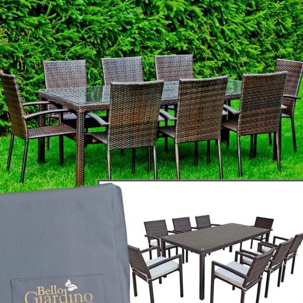 Brązowe meble ogrodowe, duży zestaw stołowy, stół+krzesła SOTTILE BROWN