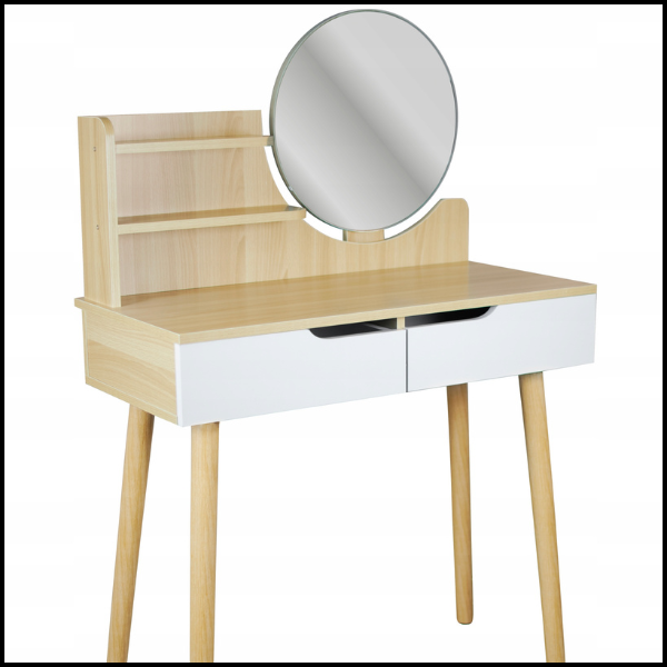 Bukowa toaletka 40x80cm skandynawska dla dziewczynki lustro kosmetyczka