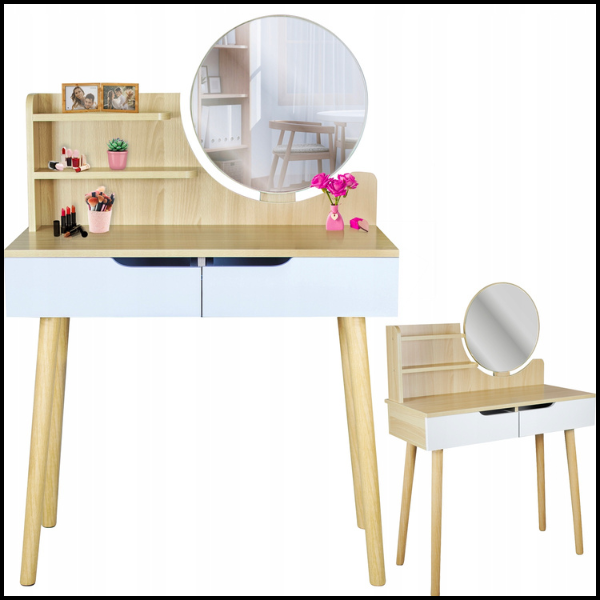 BUKOWA TOALETKA 40X80CM SKANDYNAWSKA DLA DZIEWCZYNKI LUSTRO KOSMETYCZKA