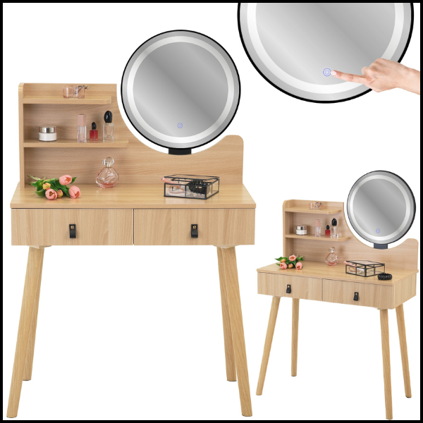 Bukowa toaletka 80x40cm z podświetlanym lustrem led kosmetyczka szuflada bukowa