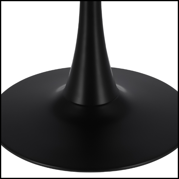 Model opiera się na stabilnej centralnej stopie, gwarantującej pewne podparcie i wysoki komfort użytkowania. Jednolite czarne wykończenie blatu, nogi oraz podstawy nadaje meblowi elegancki, nowoczesny charakter, który łatwo dopasować do różnych aranżacji wnętrz.