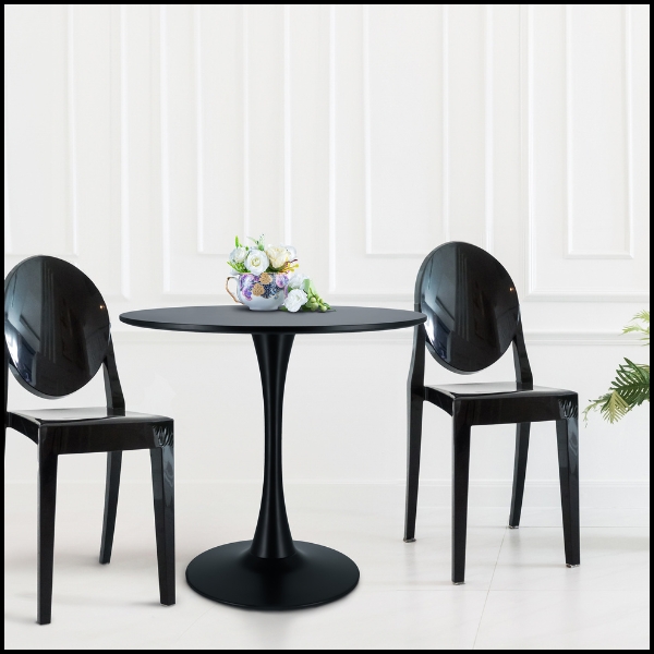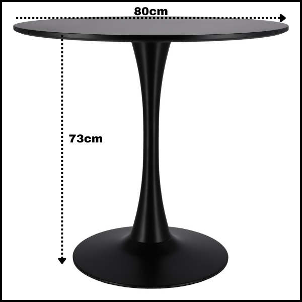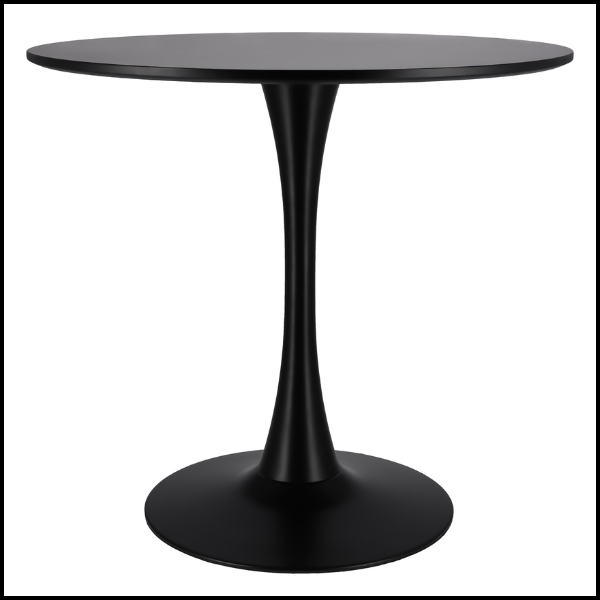 Okrągły stół to praktyczne i stylowe rozwiązanie do salonu, jadalni oraz kuchni. Blat wykonano z wysokiej jakości czarnej płyty MDF, która charakteryzuje się gładką powierzchnią, odpornością na codzienne użytkowanie oraz łatwością czyszczenia. Centralna pojedyncza noga z szeroką, stabilną podstawą zapewnia doskonałą równowagę, trwałość oraz komfort użytkowania.