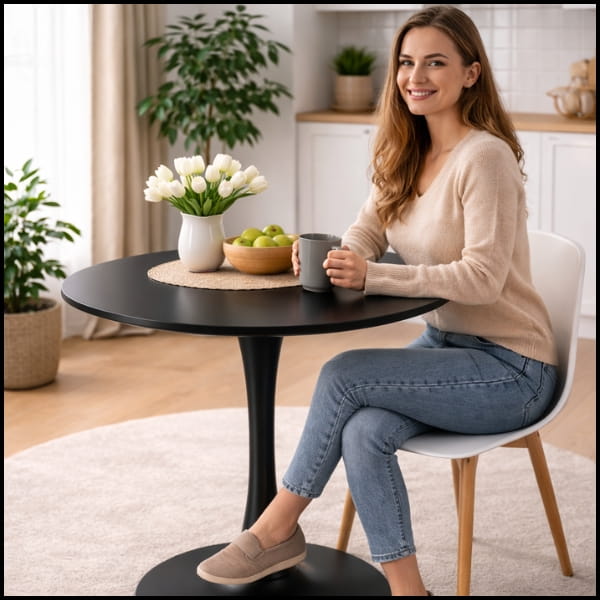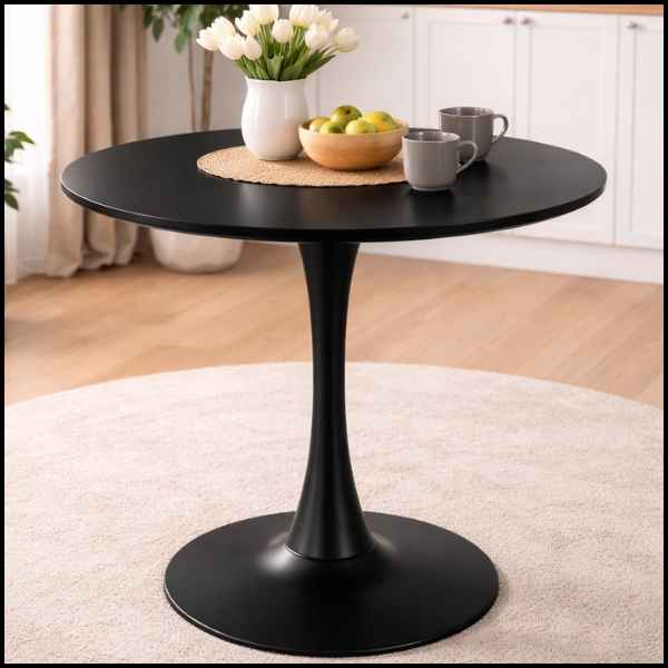 ✅SPECYFIKACJA TECHNICZNA CZARNEGO OKRĄGŁEGO STOŁU – STYL I FUNKCJONALNOŚĆ