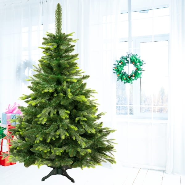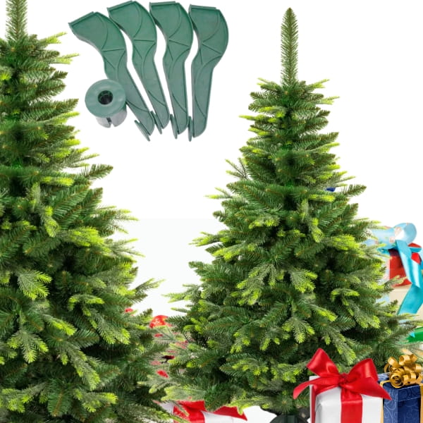 Prezentowana choinka sztuczna wygląda niemal jak żywa, co sprawia, że idealnie imituje prawdziwe drzewko sosnowe. To praktyczne rozwiązanie, ponieważ sztuczne choinki mogą posłużyć przez wiele lat, co czyni je ekonomiczną alternatywą. Drzewko wykonane jest z wysokiej jakości materiałów, takich jak PVC, dzięki czemu gałązki są gęste i trwałe. Można je wielokrotnie formować, a ich wytrzymałość pozwala na zawieszanie cięższych ozdób bez obawy o zniszczenie