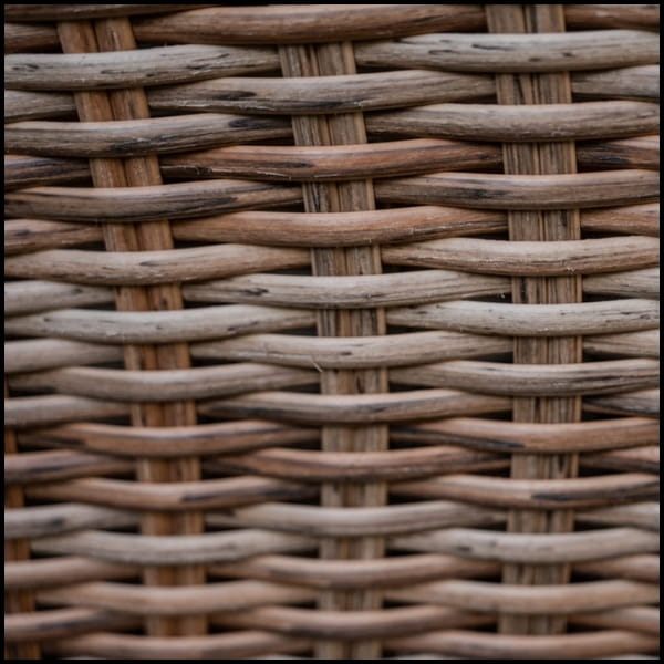 - Plecionka: okrągły technorattan o średnicy 5mm + półokrągły technorattan, drapana struktura