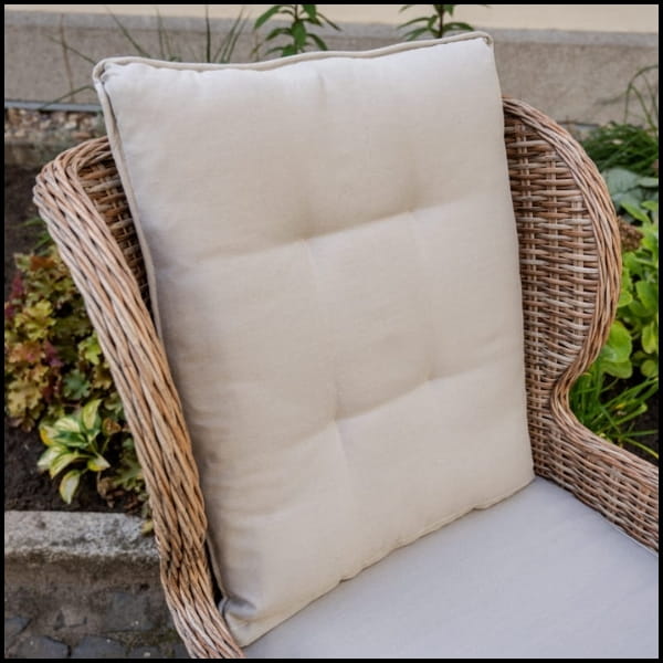 Miękkie i grube poduszki zapewniają wyjątkowy komfort, zapraszając do relaksu i wypoczynku w ogrodzie, na tarasie czy balkonie.