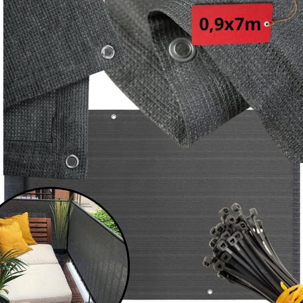 Grafitowa osłona balkonowa 0,9x7m, zasłona na taras , 97% zaciemniania, mata cieniująca