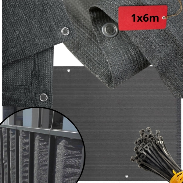 Grafitowa osłona balkonowa 1x6m, zasłona na taras, 97% zaciemniania, mata cieniująca