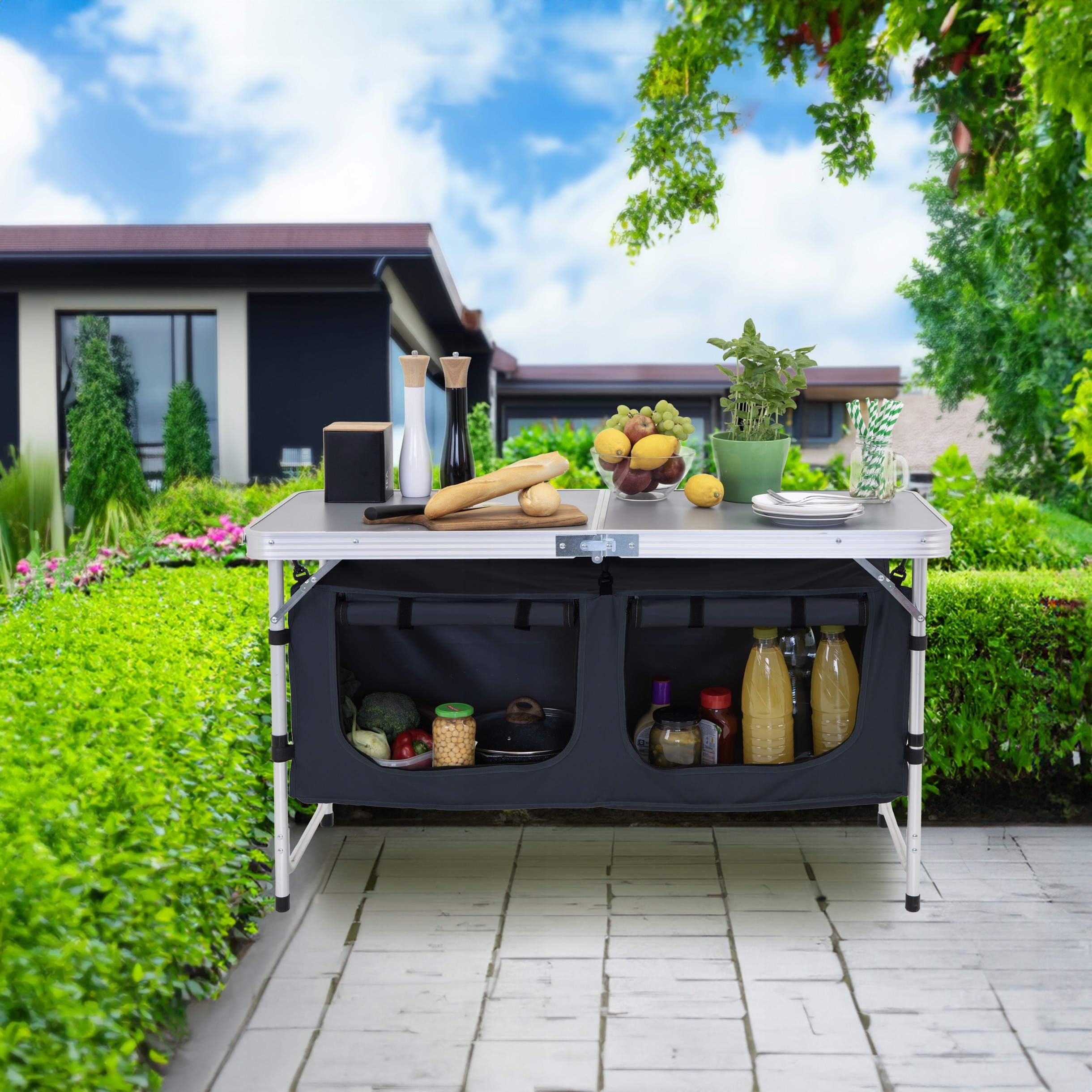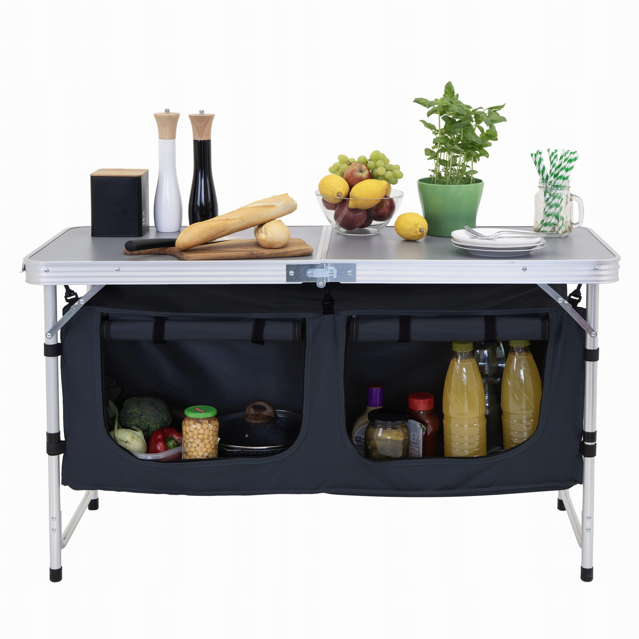 • Złożenie stolika zajmuje jedynie 2 minuty, co umożliwia szybkie i łatwe przygotowanie przestrzeni do gotowania.