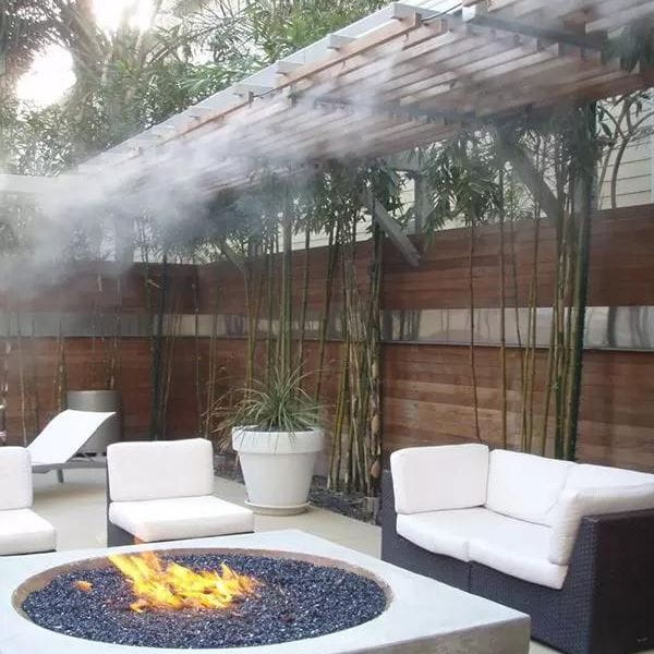 Po podłączeniu do źródła wody z dysz wydobywa się delikatna, orzeźwiająca mgiełka. Obniża ona temperaturę otoczenia o około 10°C, a także odstrasza insekty i owady. Woda z dysz sączy się powoli, co pomaga oszczędzać wodę.