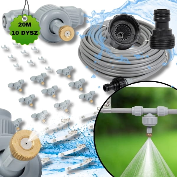 KURTYNA WODNA MGIEŁKA ZRASZACZ 20m OGRÓD KLIMA ZESTAW DO NAWADNIANIA 10 DYSZ