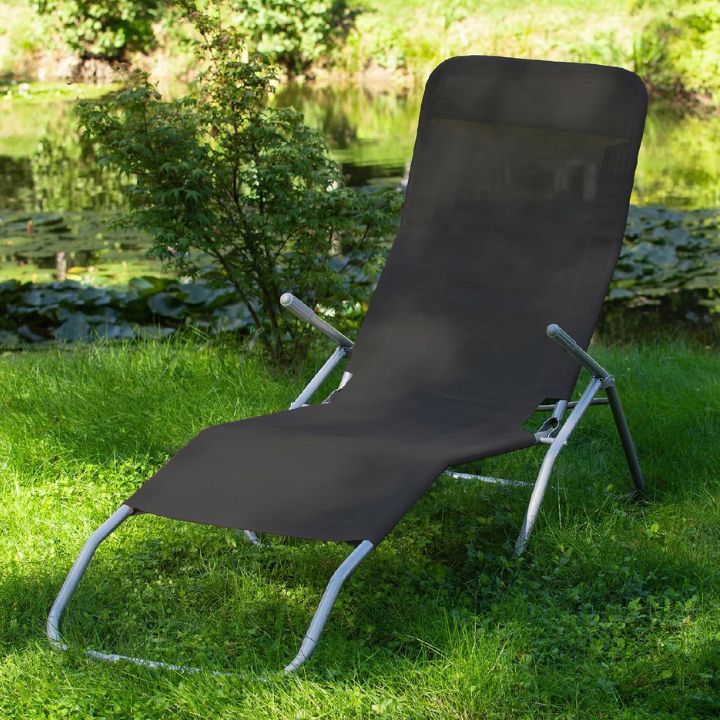 Leżak ogrodowy składany fotel plażowy leżanka turystyczny mocny, grafitowy
