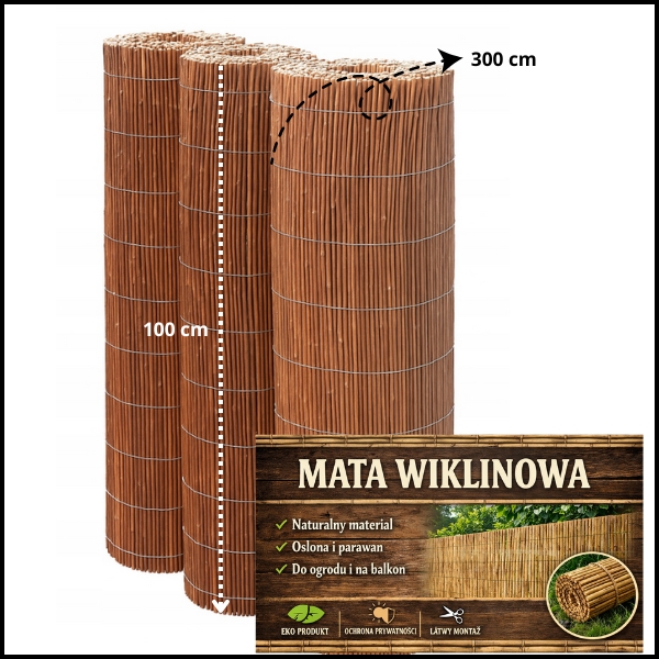 MATA WIKLINOWA 100x300cm MATY WIKLINOWE NATURALNA GĘSTA OSŁONA 100xOPASKI