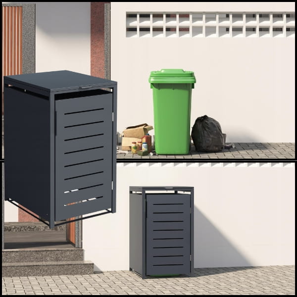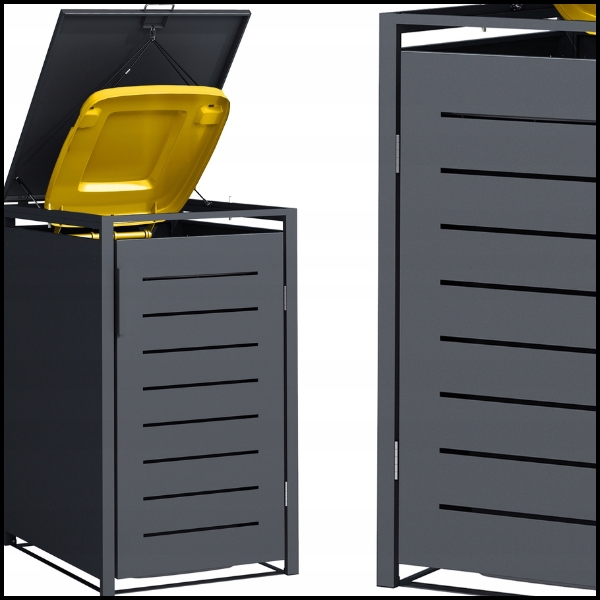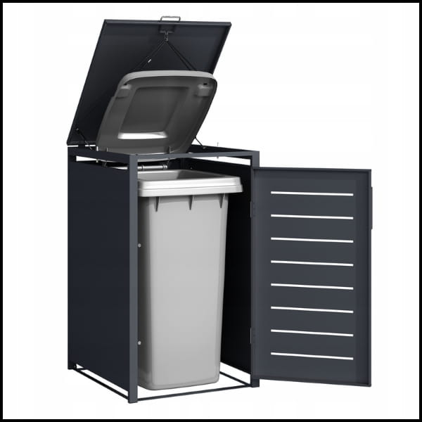 Nowoczesny antracytowy kolor nadaje osłonie elegancki i stylowy wygląd, który doskonale komponuje się z każdym otoczeniem – zarówno nowoczesnym, jak i klasycznym. To rozwiązanie nie tylko poprawia estetykę przestrzeni, ale także sprawia, że pojemniki na odpady pozostają dyskretnie ukryte.