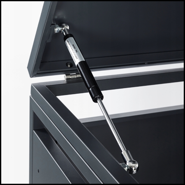 Górna klapa została wyposażona w system wspomagania otwierania, co sprawia, że jej podnoszenie jest lekkie i bezwysiłkowe. Gazowa sprężyna płynnie unosi klapę, eliminując konieczność użycia siły, a dodatkowo utrzymuje ją stabilnie pod optymalnym kątem, co zapobiega przypadkowemu opadnięciu. Dzięki temu wrzucanie odpadów jest szybkie, wygodne i bezpieczne – nawet gdy masz zajęte ręce!