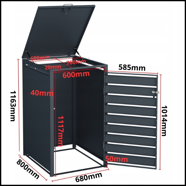 METALOWA OSŁONA KOSZA NA ŚMIECI 240/120L ZABUDOWA ŚMIETNIKA, SCHOWEK NA KUBEŁ, ANTRACYTOWA