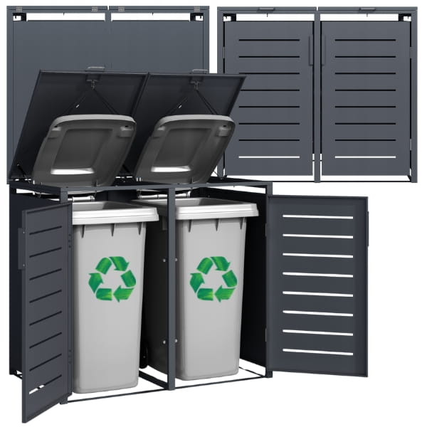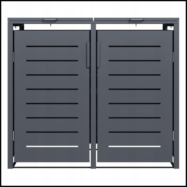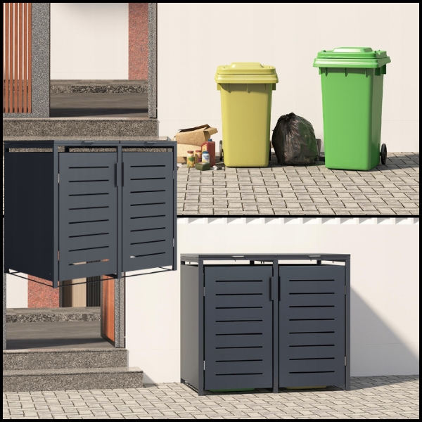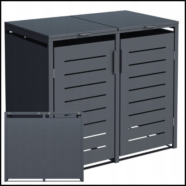 METALOWA PODWÓJNA OSŁONA KOSZA NA ŚMIECI 240 ORAZ 120 L ZABUDOWA ŚMIETNIKA, SCHOWEK NA KUBEŁ, ANTRACYTOWA