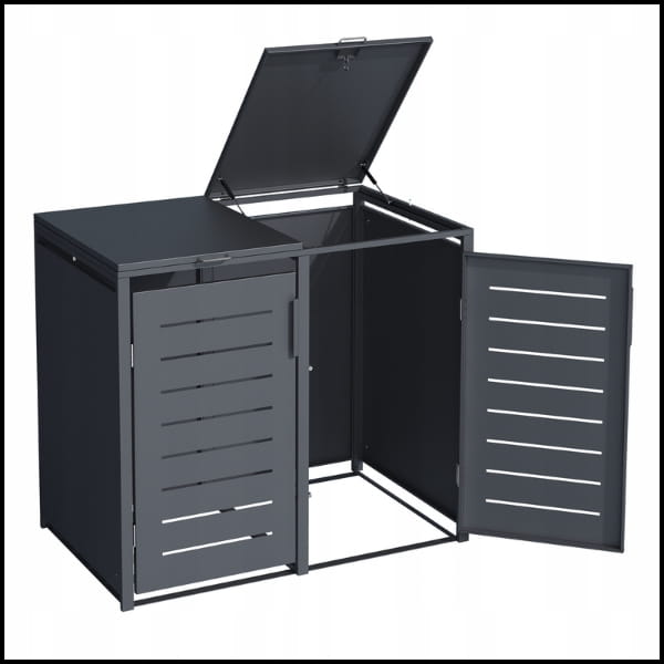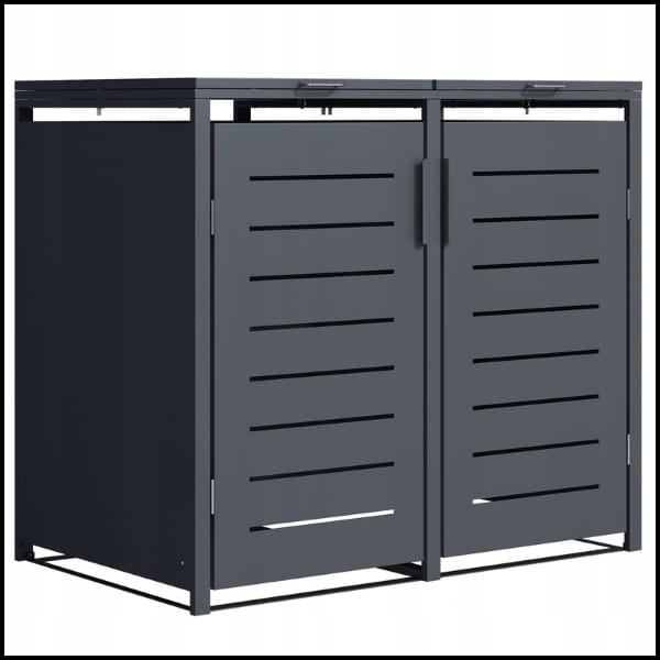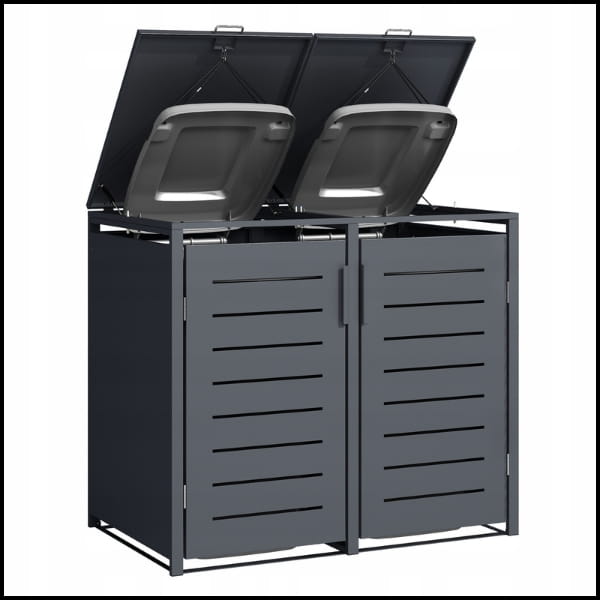 Metalowa podwójna osłona kosza na śmieci 240 L zabudowa śmietnika, schowek na kubeł , antracytowa