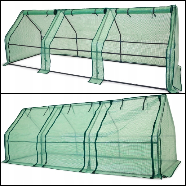Model ten składa się z trzech oddzielnych sekcji, co ułatwia organizację upraw i pozwala na dostosowanie przestrzeni do różnych gatunków roślin. Brak półek daje większą swobodę w rozmieszczeniu sadzonek i doniczek. Wejście do szklarni zostało wyposażone w zamek błyskawiczny, który ułatwia dostęp i umożliwia lepszą wentylację. Dodatkowe sznurki pozwalają na wygodne podwiązywanie kurtyny drzwi oraz mocowanie folii do stelaża, co sprawia, że całość jest funkcjonalna i łatwa w użytkowaniu.