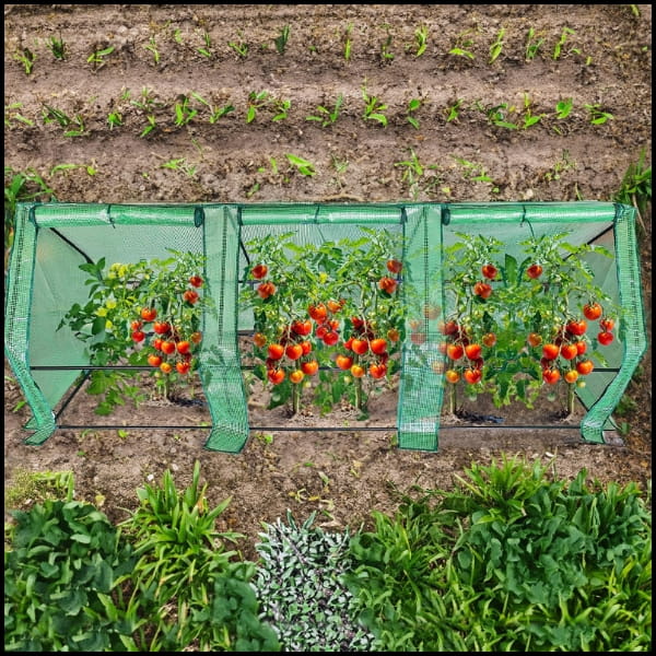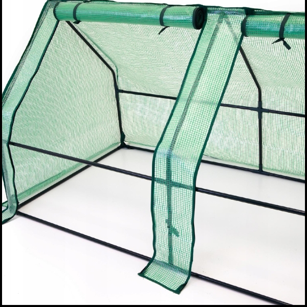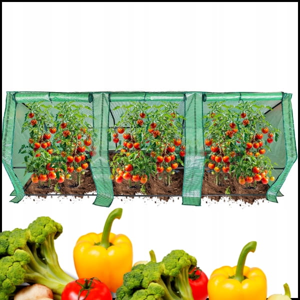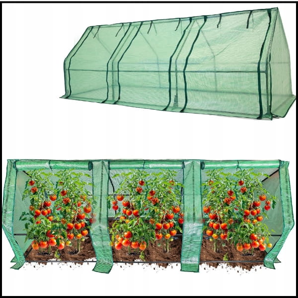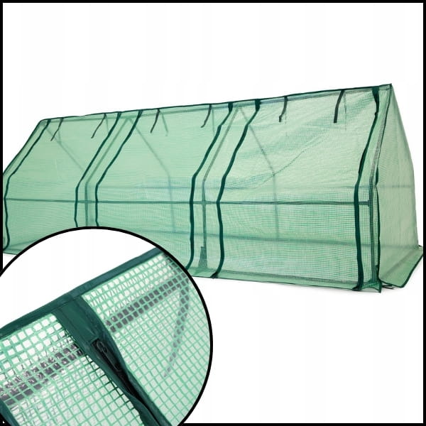 ➡️ Ochrona roślin – solidna zielona folia PVC (0,09 mm) skutecznie zabezpiecza rośliny przed wiatrem, chłodem i deszczem, tworząc doskonałe warunki do wzrostu.