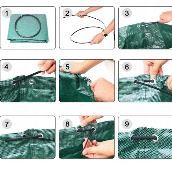 Worek został wyposażony w specjalny pasek usztywniający, który zapobiega jego zapadaniu się i utrzymuje otwartą formę. Dzięki temu napełnianie worka odpadami ogrodowymi, takimi jak liście, trawa czy gałęzie, jest znacznie wygodniejsze i szybsze.