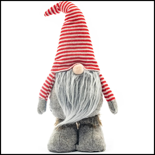 Stojący skrzat świąteczny to oryginalny element dekoracji, który łączy tradycyjny wygląd z lekkim poczuciem humoru, wprowadzając wyjątkowy, świąteczny klimat do każdego wnętrza.