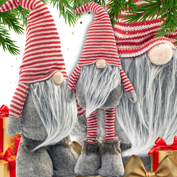 Tradycyjny skandynawski design – urocze, długobrode skrzaty z wysokimi czapeczkami.