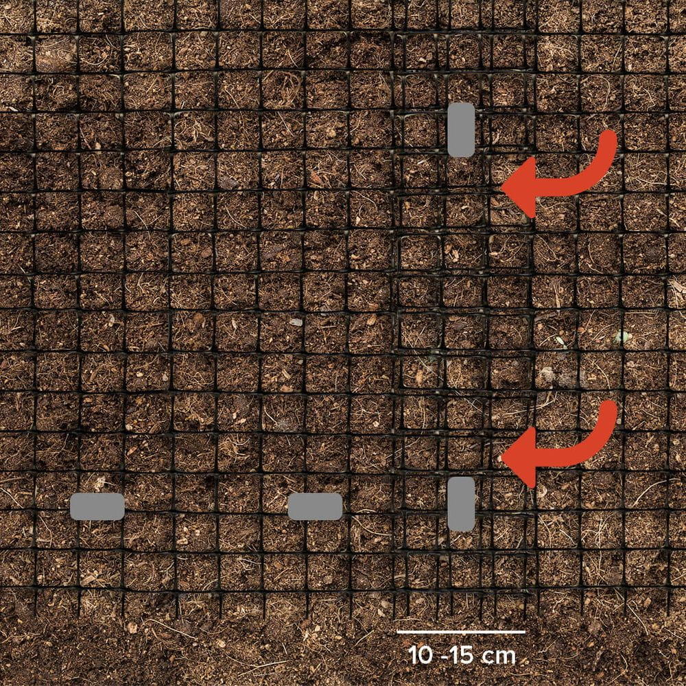 • Jeśli zakopiemy ją zbyt głęboko, istnieje ryzyko, że kret będzie mógł próbować przedrzeć się od góry. Z kolei zbyt płytkie zakopanie może skutkować przerwaniem siatki podczas późniejszych prac pielęgnacyjnych w ogrodzie.