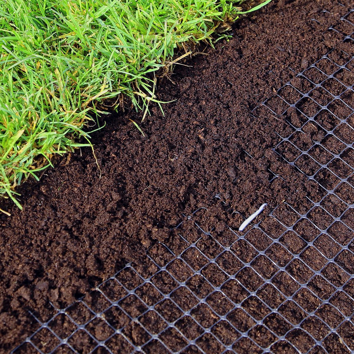 • Siatka o odpowiednio dobranym rozmiarze oczek i wadze wzmacnia strukturę ziemi, dzięki czemu rośnie na niej znacznie silniejsza trawa.