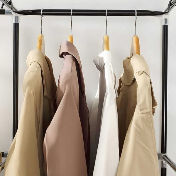 Dwa solidne wieszaki gwarantują miejsce na przechowywanie koszul, sukienek, marynarek i innych ubrań, zapewniając im bezpieczeństwo i porządek. Wieszak na ubrania utrzyma obciążenie do 25 kg, dając pewność bezpiecznego przechowywania ubrań.