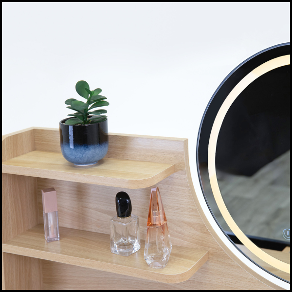 Postaw na funkcjonalność i estetykę w jednym, wybierając toaletkę z praktycznymi półeczkami!