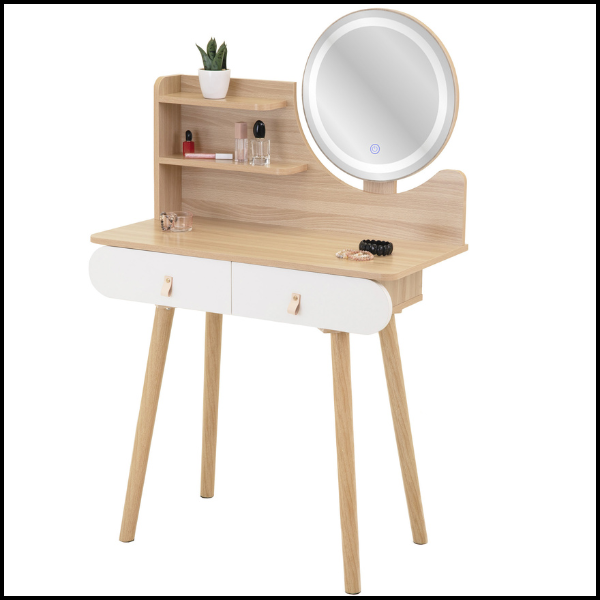 Toaletka bukowa 80x40cm lustro led podświetlane kosmetyczka biała szuflada