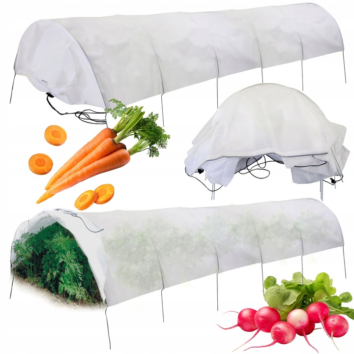 • Skuteczna ochrona plonów – zabezpiecza grządki przed przymrozkami, wiatrem, szkodnikami i ptakami.